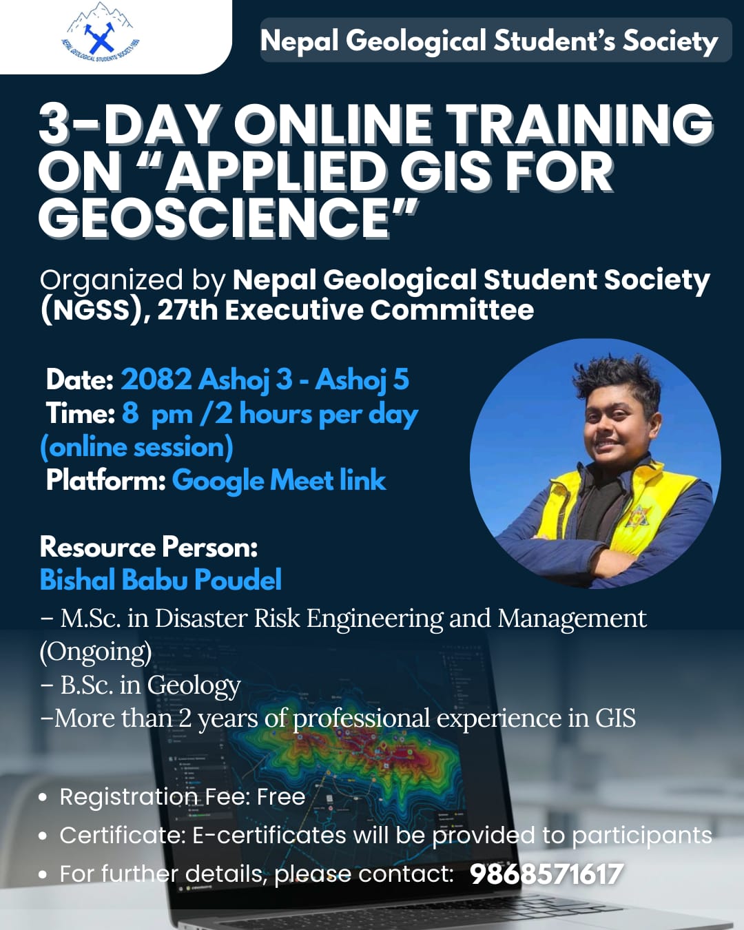 The Nepal Geological Students’ Society (NGSS) successfully conducted a three-day online training on “Applied GIS for Geoscience” from September 19–21, 2025 (Ashoj 3–5, 2082 BS).